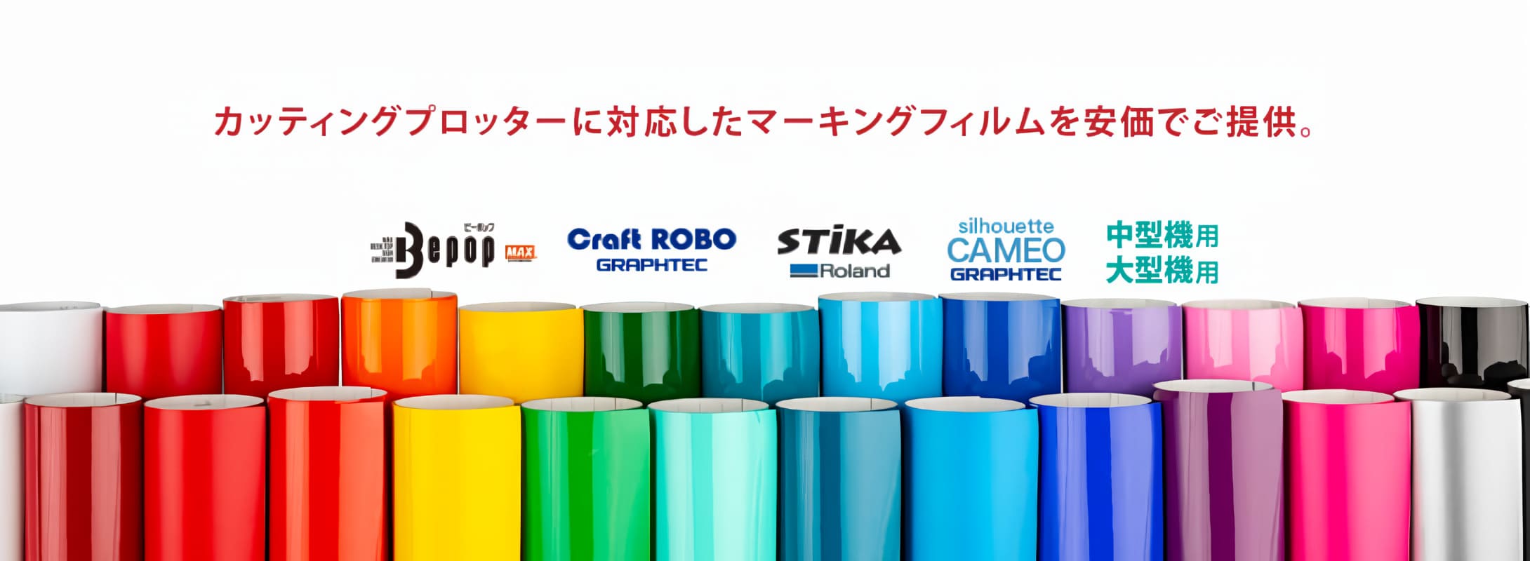 - カッティングプロッターに対応したマーキングフィルムを安価でご提供。シートは大手メーカー製の安心品質です。転写シート・転写フィルムも格安販売中。※カッティングシートは中川ケミカルの登録商標です。