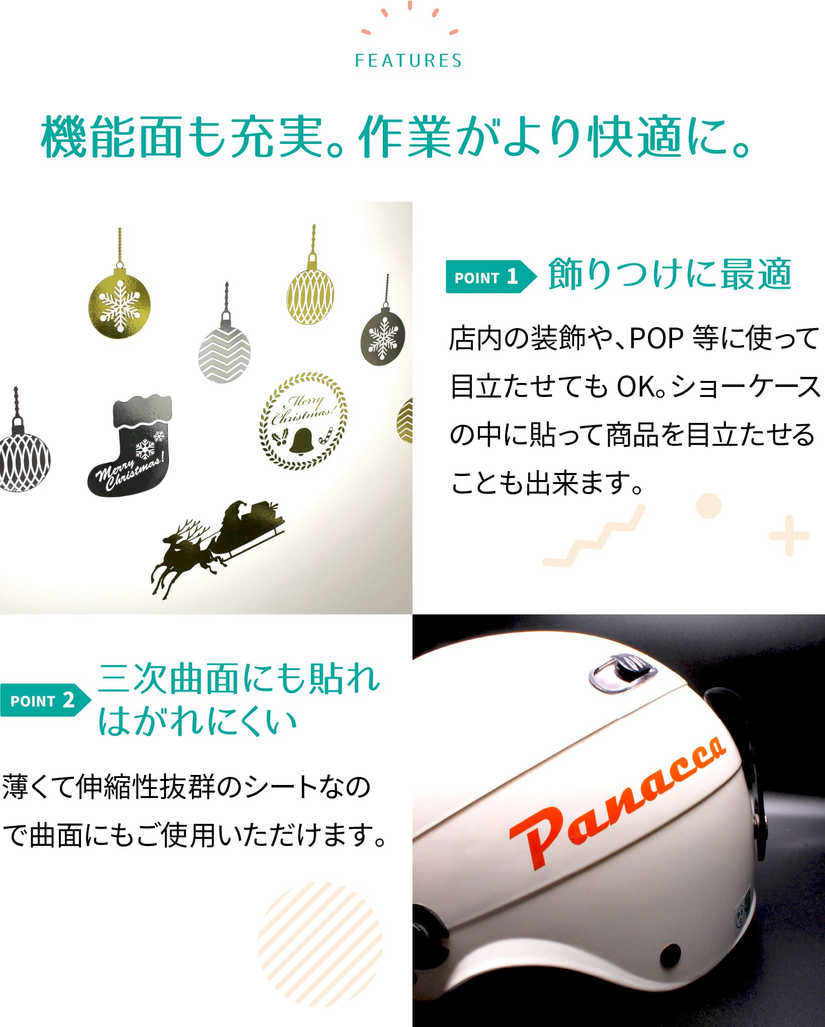 また、店舗のショーウィンドウ、屋外看板等の本格的な施工にもお使いいただけるカッティング用シートです