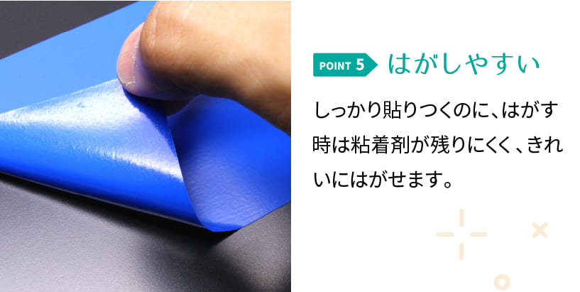 接着剤が残りにくく、はがしやすいので、家具・家電のリメイクや補修、店舗でのサインやポップ(POP)等に適しています