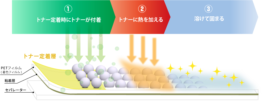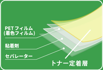 ダイトービーノ レーザープリンター用は、ドラムからトナーをメディアを転写するレーザープリンターの構造からフィルム表面に凹凸が少ないこと。印刷スピードが速くても、インクがしっかり定着し、色彩豊かな印刷が可能なように工夫されています。