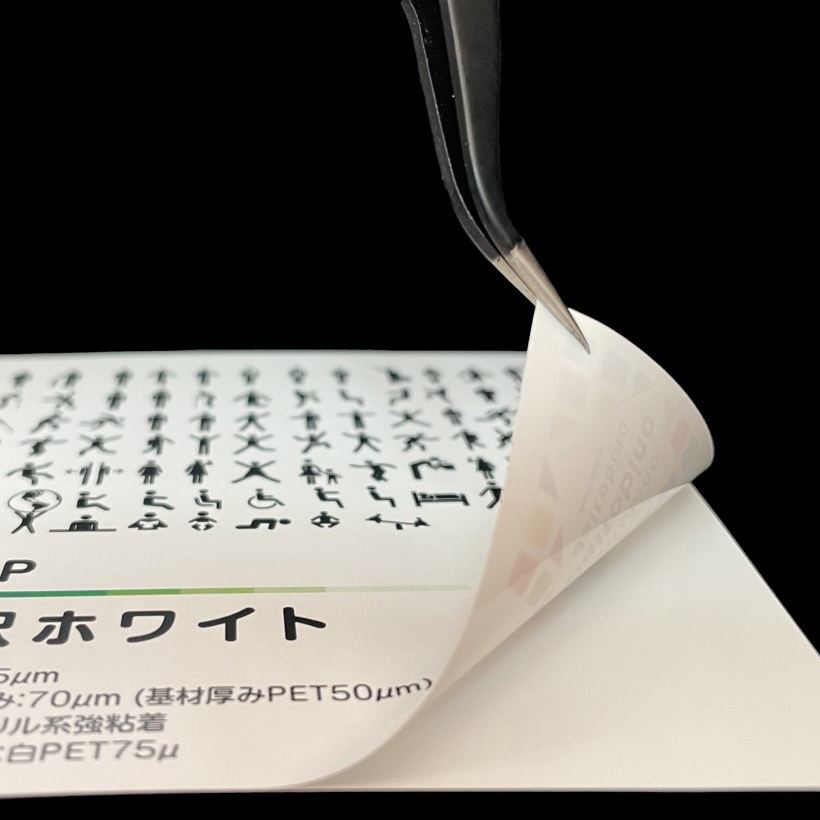 本製品はラベル面・セパレータ(剥離紙)共に “印刷可能” な「PET素材」を使用しています。 さらに加工適性に優れたPET基材表面には国内メーカーの高度な塗工技術による表面処理がなされています。 それにより、インクジェットインクの「定着性」、画像や写真などの印刷に於ける「再現性」にも非常に優れた製品です。
