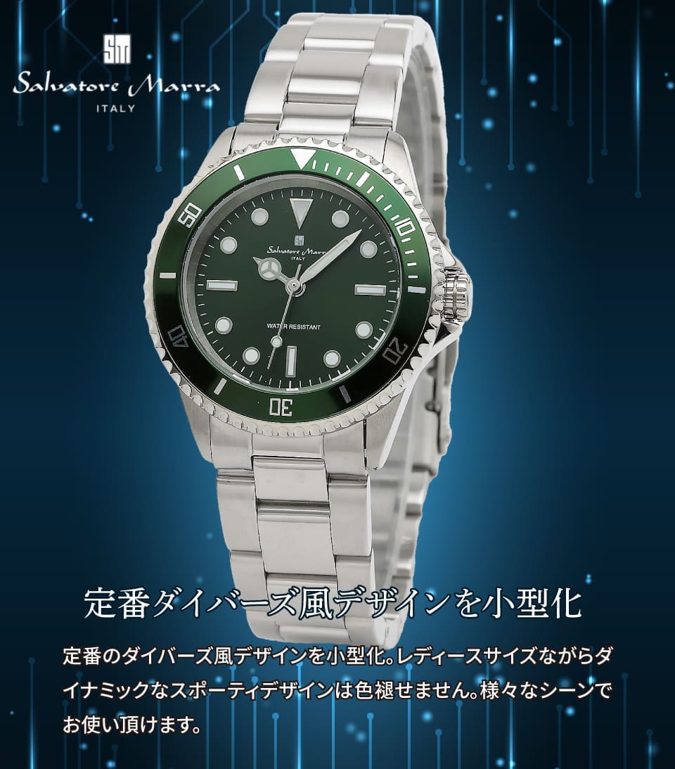 Salvatore Marra 腕時計 レディース SM19154 SSGR クオーツ ダイバーズ風 5気圧防水 メタルベルト ケース経 31mmや事務用品を格安で揃えるならパナシアへ!!